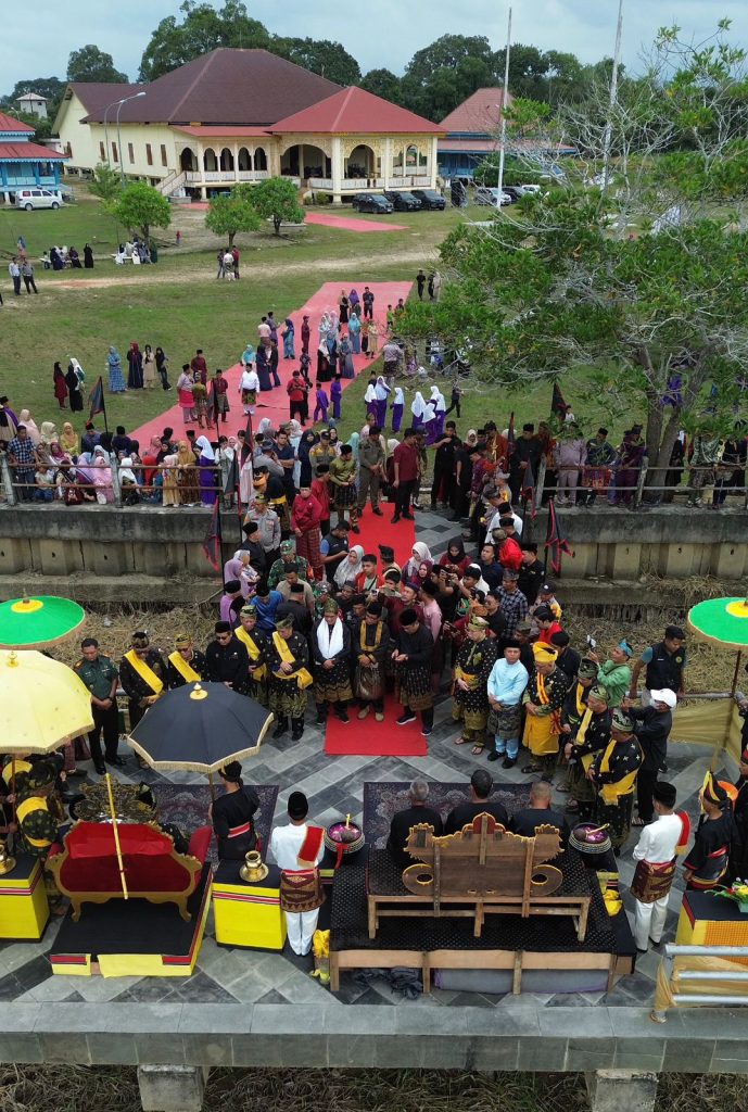 Prosesi berlangsung khidmat dan penuh antusiasme masyarakat yang turut menyaksikan jalannya rangkaian adat hingga selesai dilaksanakan.(MC.Pelalawan).