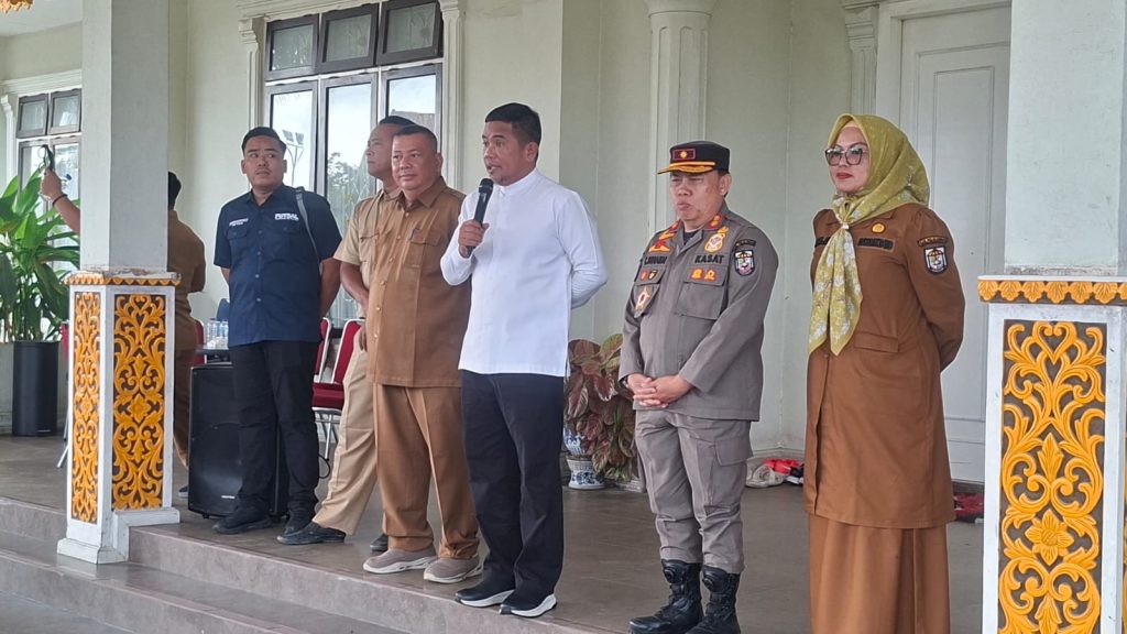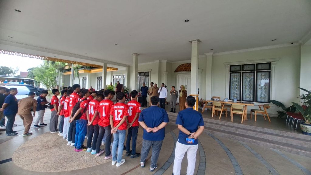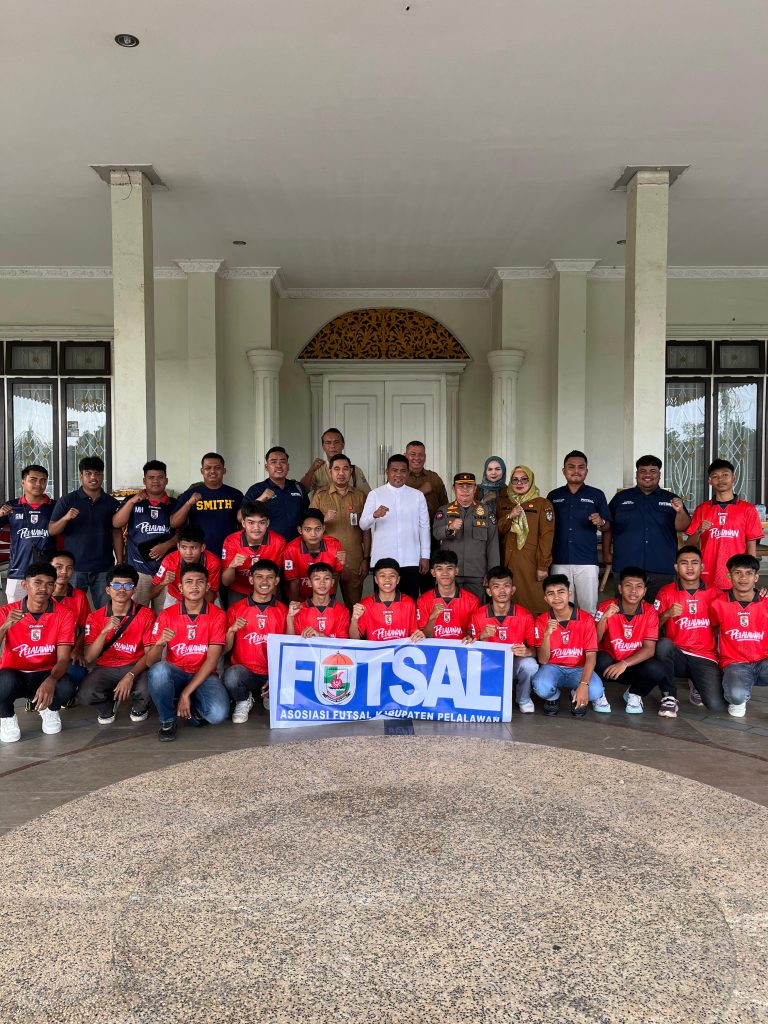 Pelalawan, Mediacenter -Bupati Pelalawan H. Zukri secara resmi melepas Tim Atlet Futsal Kabupaten Pelalawan yang tergabung dalam Asosiasi Futsal Kabupaten Pelalawan ( AFKAB ) untuk mengikuti Kejuaraan Daerah ( Kejurda ) Piala Gubernur, Selasa (21/4/2026 ), di rumah Dinas Bupati Pelalawan. Hadir pada kesempatan tersebut Kasatpol PP Tengku Junaidi, Kadispora Dodi Asma Saputra, Kabid PUPR, serta Kabid Dispora.