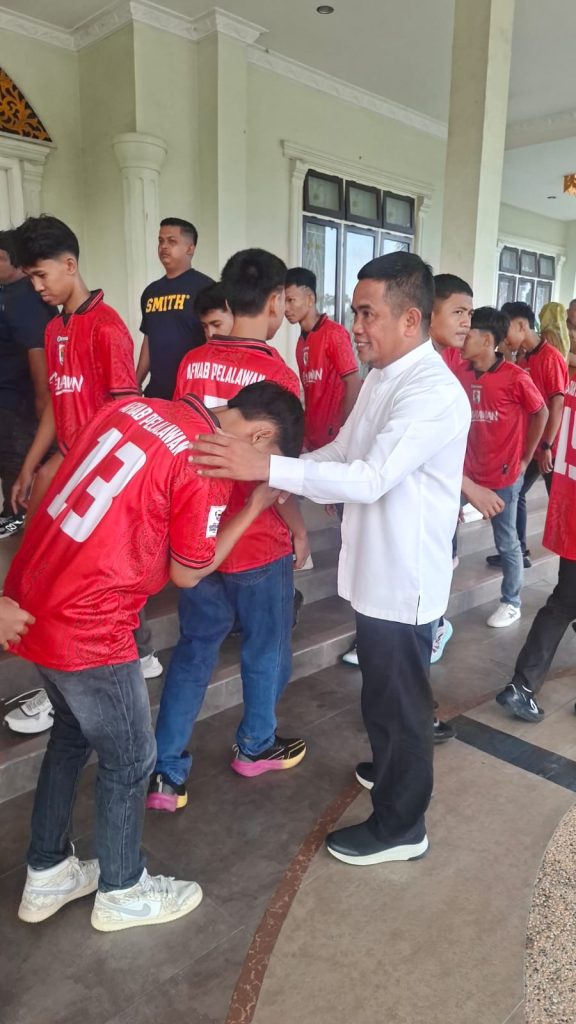 ” Harus semangat dalam bertanding, dan selalu menjaga nama baik Kabupaten Pelalawan, jangan emosi, dan kompak selalu, berikan yang terbaik untuk Kabupaten Pelalawan. Semoga selalu diberikan kemenangan dalam setiap pertandingan, serta dijauhkan dari musibah.” Ucap Bupati