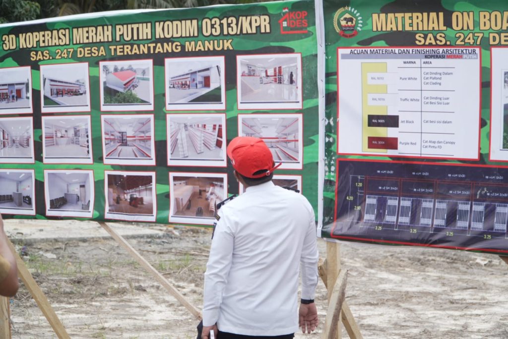Bupati Pelalawan H. Zukri, SM., MM., bersama jajaran Pemerintah Kabupaten Pelalawan meninjau langsung progres pembangunan Gerai Koperasi Merah Putih yang berlokasi di Desa Terantang Manuk, Kecamatan Pangkalan Kuras, Selasa (6/1/2026).