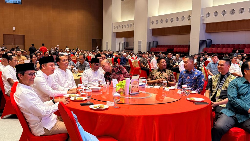 Pelalawan, Mediacenter – Bupati Pelalawan H. Zukri, SM., MM bersama Wakil Bupati Pelalawan Husni Tamrin menghadiri kegiatan halal bihalal Idul Fitri 1447 Hijriyah yang ditaja oleh APRIL Group, bertempat di RGE Community Center Riau, Komplek Pangkalan Kerinci, Selasa (31/3/2026). Kegiatan ini turut dihadiri oleh Forum Koordinasi Pimpinan Daerah (Forkopimda) Kabupaten Pelalawan, jajaran pejabat dan kepala OPD di lingkungan Pemerintah Kabupaten Pelalawan, serta manajemen PT RAPP.